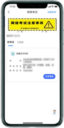 考前主机登录艺术升APP,在首页或报考页选择“网络考试”,找到新疆艺术学院作曲与作曲技术理论专业相应科目,点击“正式考试”按钮,弹出二维码。此时需要用辅机打开艺术升APP(不登录),在辅机艺术升首页右上角打开扫描工具“[-]”,辅机扫描主机上弹出的二维码,辅机扫码成功后进入监考状态。