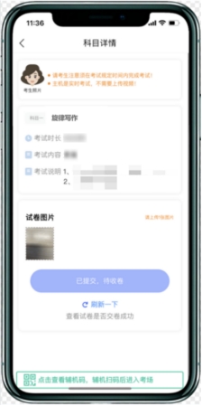 答题纸照片提交成功之后,页面显示“已完成”则表明完成本次考试。