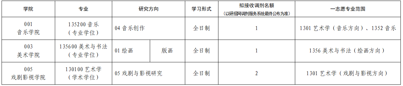 我校拟开展2026年硕士研究生招生第三批次调剂工作,拟接收调剂专业及名额如下: